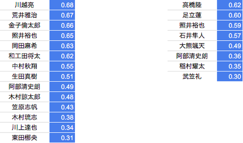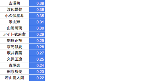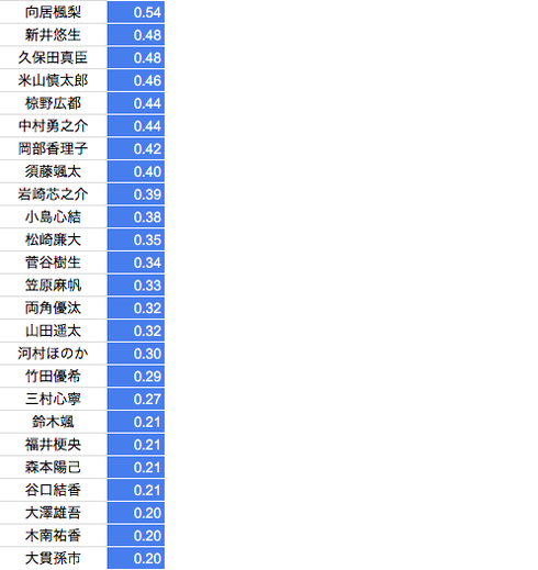 *2017夏季のベストタイムのランキング15名分となります。