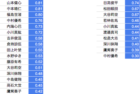 *2017年冬季の記録からの伸びタイムのランキング表となります。