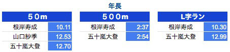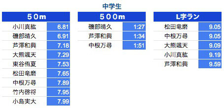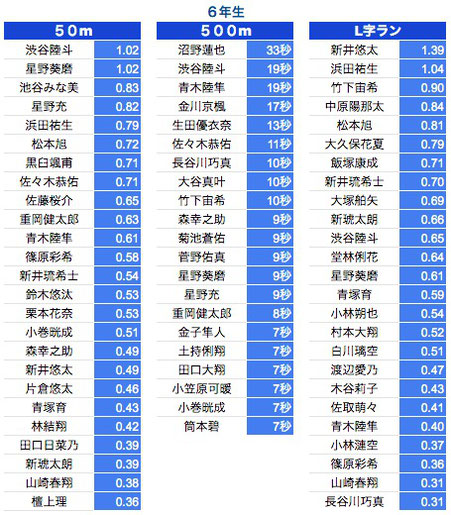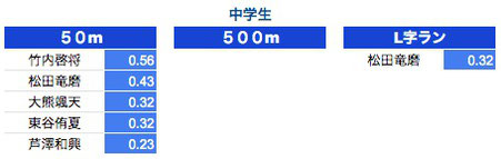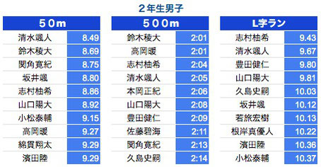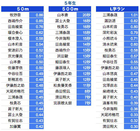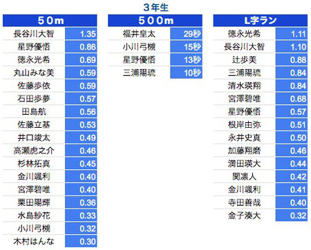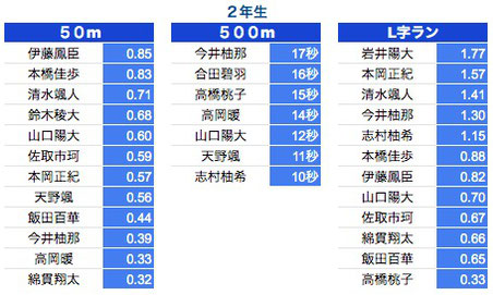 *50M:1年生〜3年生は0.3秒以上、4年生以上は0.2秒以上を掲載しております。