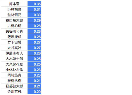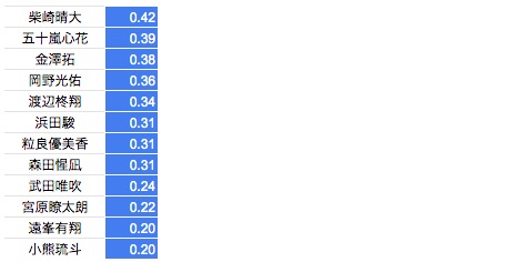 *2021年冬季の記録からの伸びタイムのランキング表となります。