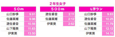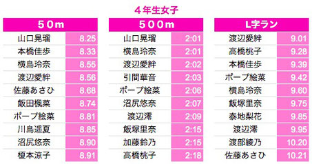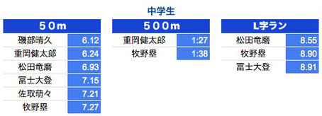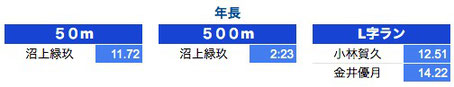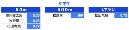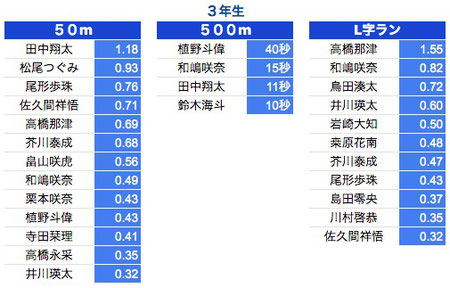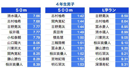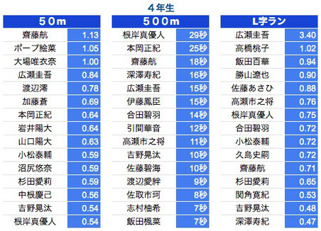 *50M:1年生〜3年生は0.3秒以上、4年生以上は0.2秒以上を掲載しております。