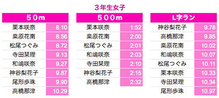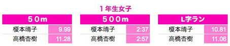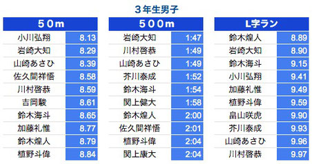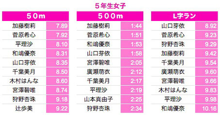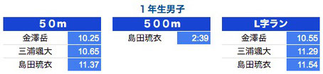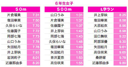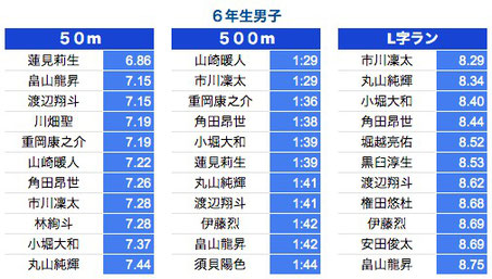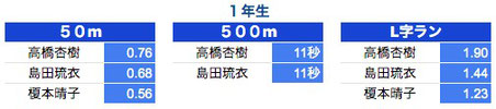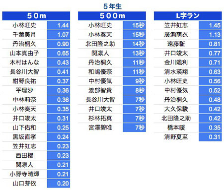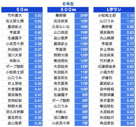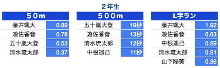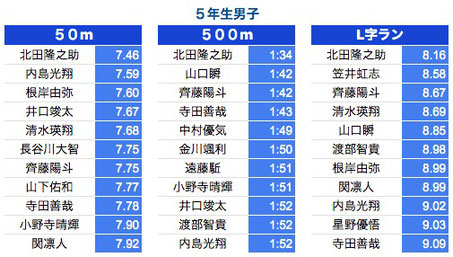 500M:1年生〜3年生は10秒以上、4年生以上は7秒以上を掲載しております。