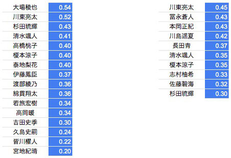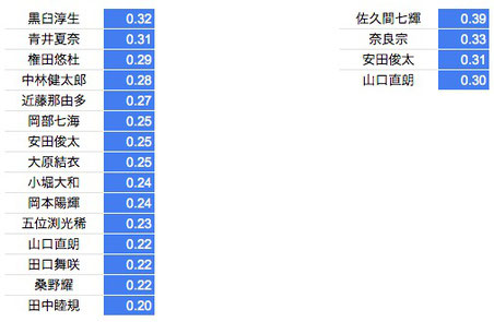*2023年冬季の記録からの伸びタイムのランキング表となります。
